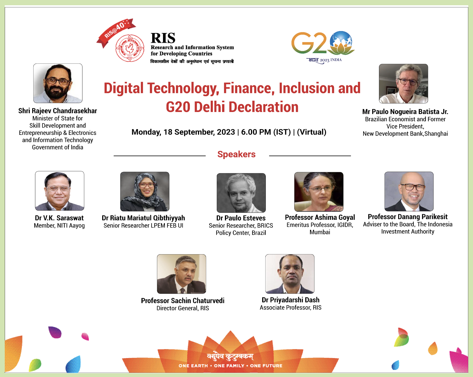 A special virtual panel discussion on digital technology, finance, inclusion and G20 Delhi declaration hosted by Research and Information System For Developing Countries.